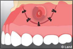 On repositionne le lambeau qui est ensuite suturé, et la radiographie de contrôle peut être prise.
