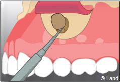 Il faut localiser le bout de la racine de la dent atteinte, procéder au décollement de la lésion avec une curette à bords tranchants, couper et enlever la partie de racine infectée.